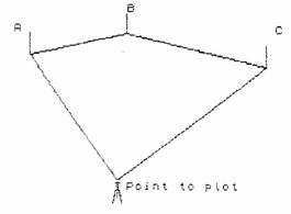 E. BI-POLAR TO CARTESIAN CO-ORDINATE conversion could be useful to any site planner giving an instant and accurate result and doing away with the need to plot with a compass. When applied to PITCALC results it is possible to plot on a large scale plan which does not include the original sighted points. A reciprocal conversion can be obtained using the TRIANGLE CALCULATIONS D, (B)